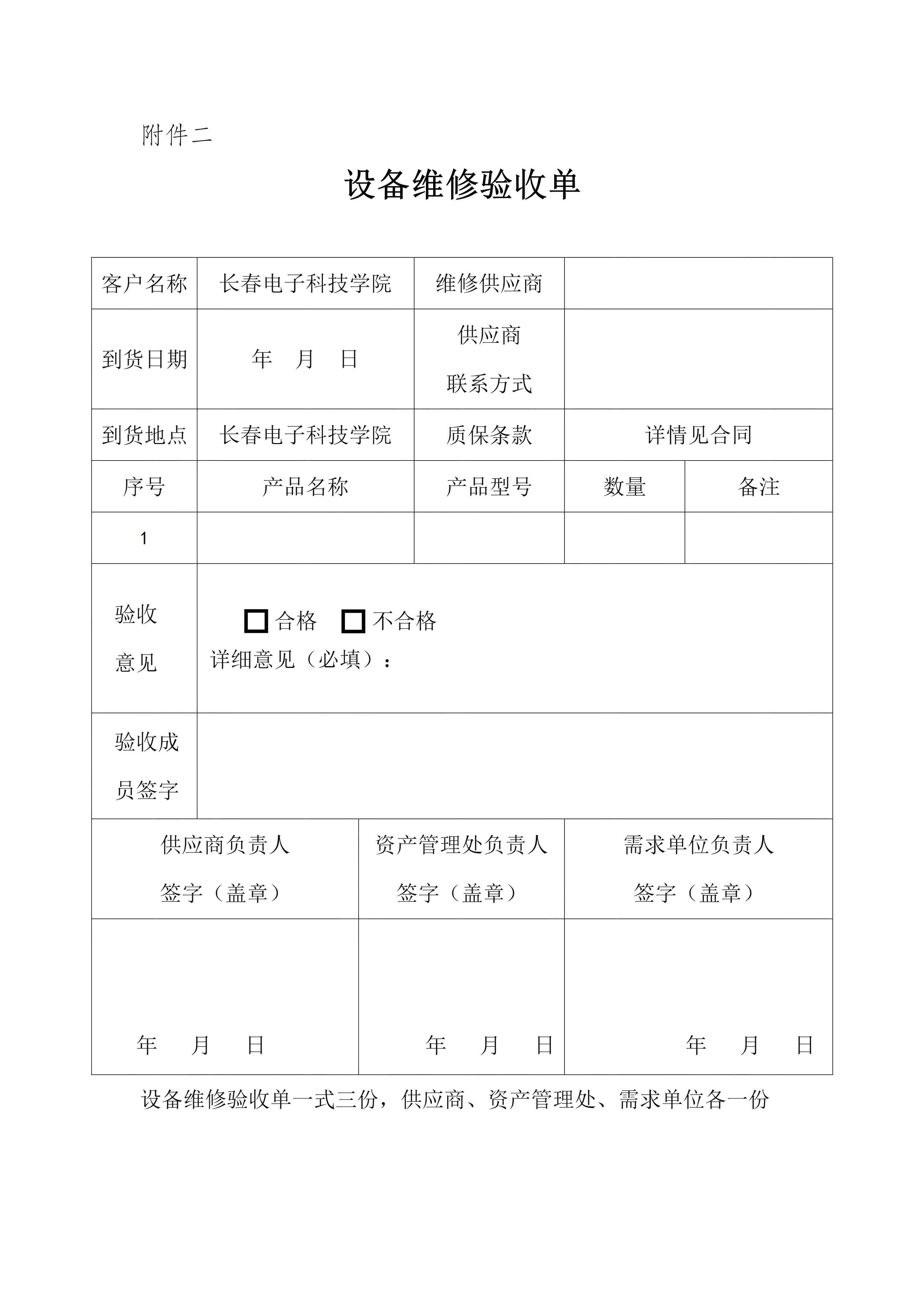 设备维修验收单